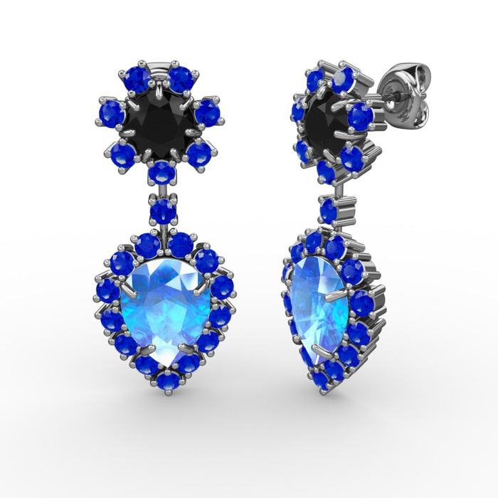 Akuamarin, lab safir ve siyah zirkon 925 ayar gümüş küpe