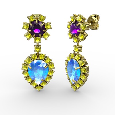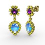 Akuamarin, peridot ve ametist 18 ayar altın küpe
