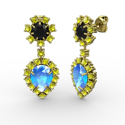 Akuamarin, peridot ve siyah zirkon 18 ayar altın küpe