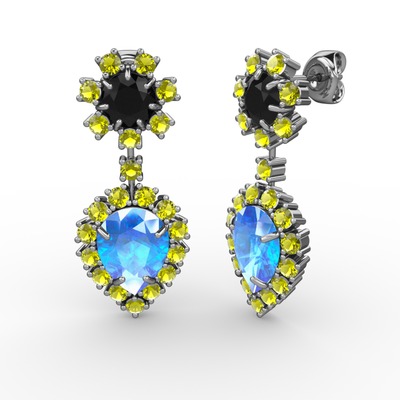 Akuamarin, peridot ve siyah zirkon 8 ayar beyaz altın küpe