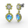 Akuamarin, peridot ve swarovski 14 ayar beyaz altın küpe