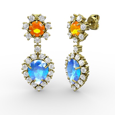 Akuamarin, pırlanta ve sitrin 14 ayar altın küpe (0.792 karat)