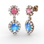 Akuamarin, swarovski ve pembe kuvars 14 ayar rose altın küpe