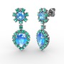 Akuamarin ve yeşil kuvars 8 ayar beyaz altın küpe