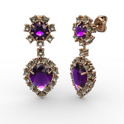 Ametist ve dumanlı kuvars 8 ayar rose altın küpe
