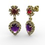 Ametist, dumanlı kuvars ve garnet 14 ayar altın küpe