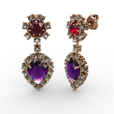 Ametist, dumanlı kuvars ve garnet 925 ayar rose altın kaplama gümüş küpe
