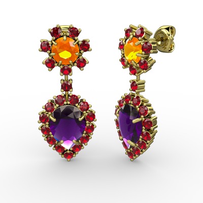 Ametist, garnet ve sitrin 8 ayar altın küpe