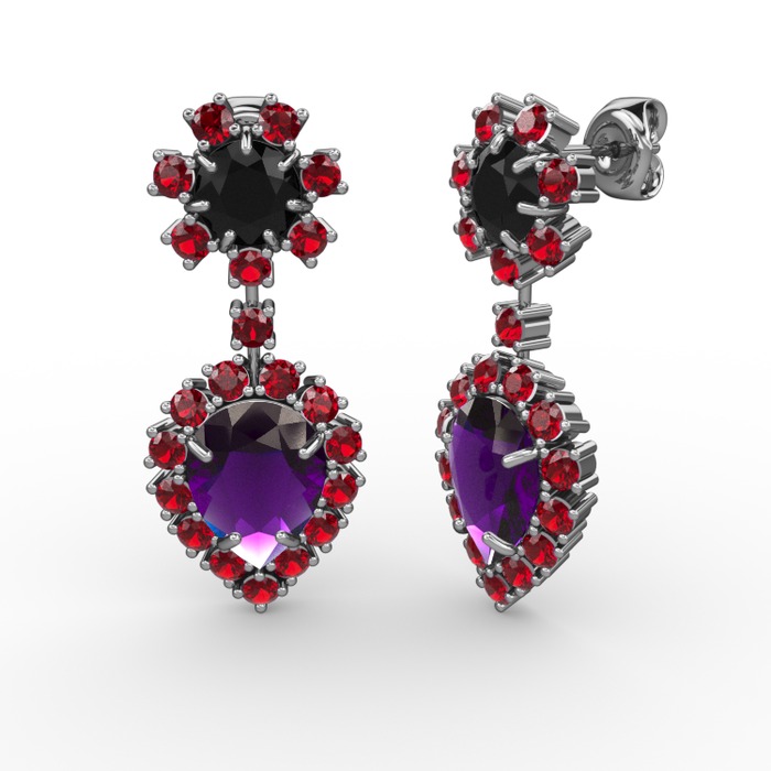 Ametist, garnet ve siyah zirkon 925 ayar gümüş küpe