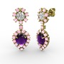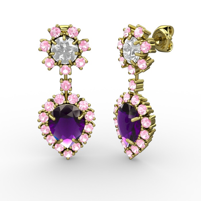 Ametist, pembe kuvars ve beyaz zirkon 14 ayar altın küpe