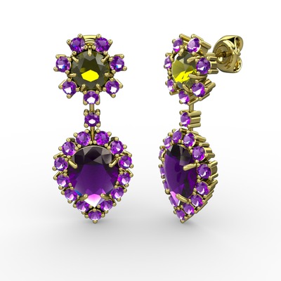 Ametist ve peridot 925 ayar altın kaplama gümüş küpe