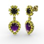 Ametist, peridot ve siyah zirkon 18 ayar altın küpe