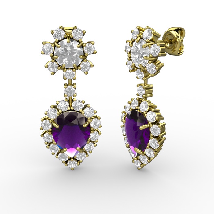 Ametist, pırlanta ve beyaz zirkon 14 ayar altın küpe (0.792 karat)