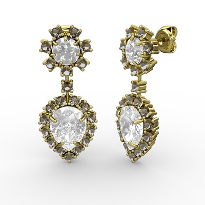 Beyaz zirkon, dumanlı kuvars ve swarovski 18 ayar altın küpe