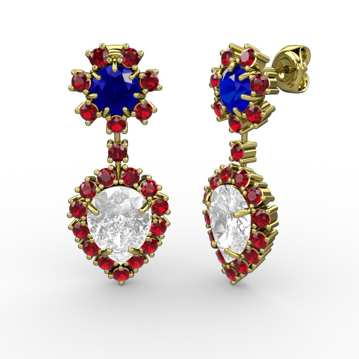 Beyaz zirkon, garnet ve lab safir 925 ayar altın kaplama gümüş küpe