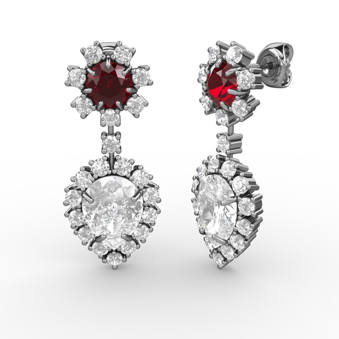 Beyaz zirkon, pırlanta ve garnet 8 ayar beyaz altın küpe (0.792 karat)