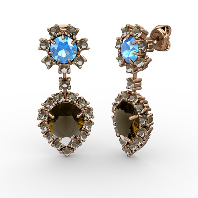 Dumanlı kuvars ve akuamarin 8 ayar rose altın küpe