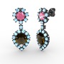 Dumanlı kuvars, akuamarin ve pembe kuvars 925 ayar siyah rodyum kaplama gümüş küpe