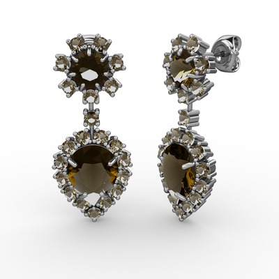 Dumanlı kuvars 925 ayar gümüş küpe