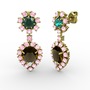 Dumanlı kuvars, pembe kuvars ve yeşil kuvars 14 ayar altın küpe