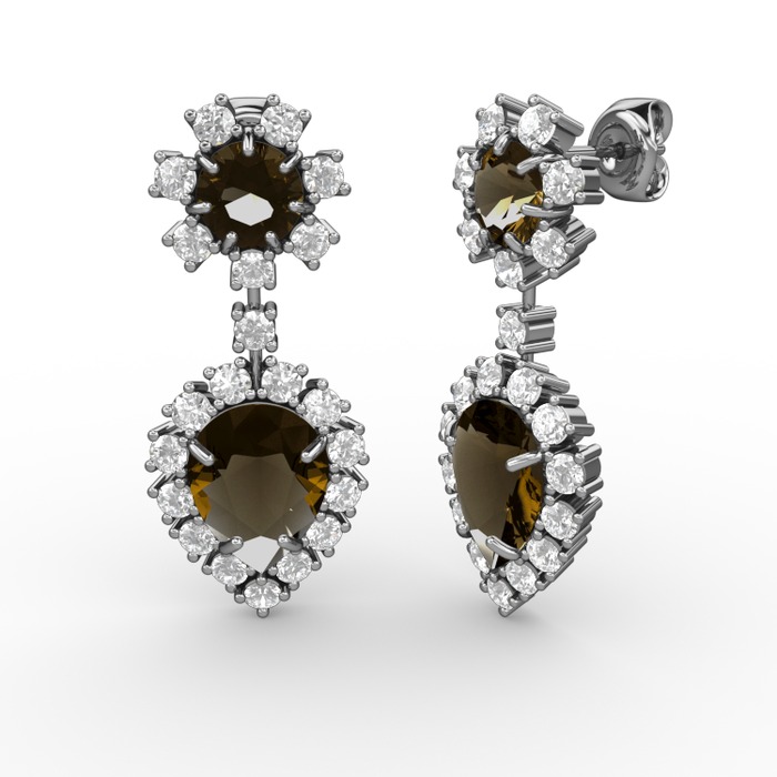 Dumanlı kuvars ve pırlanta 925 ayar gümüş küpe (0.792 karat)