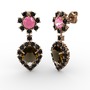 Dumanlı kuvars, siyah zirkon ve pembe kuvars 925 ayar rose altın kaplama gümüş küpe