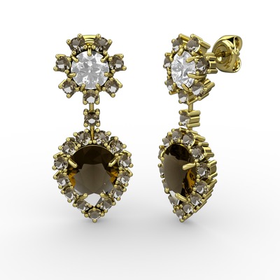 Dumanlı kuvars ve swarovski 18 ayar altın küpe