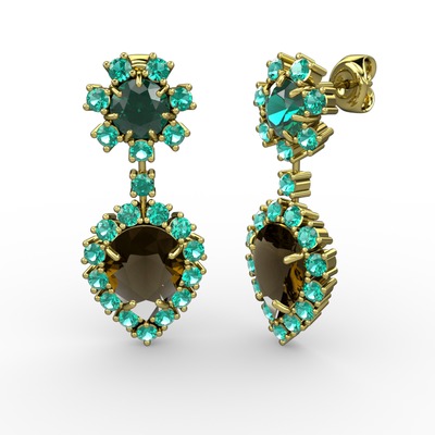 Dumanlı kuvars ve yeşil kuvars 18 ayar altın küpe