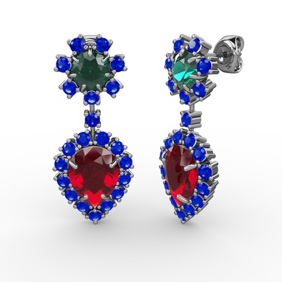 Garnet, lab safir ve yeşil kuvars 18 ayar beyaz altın küpe