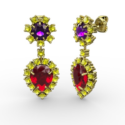 Garnet, peridot ve ametist 925 ayar altın kaplama gümüş küpe