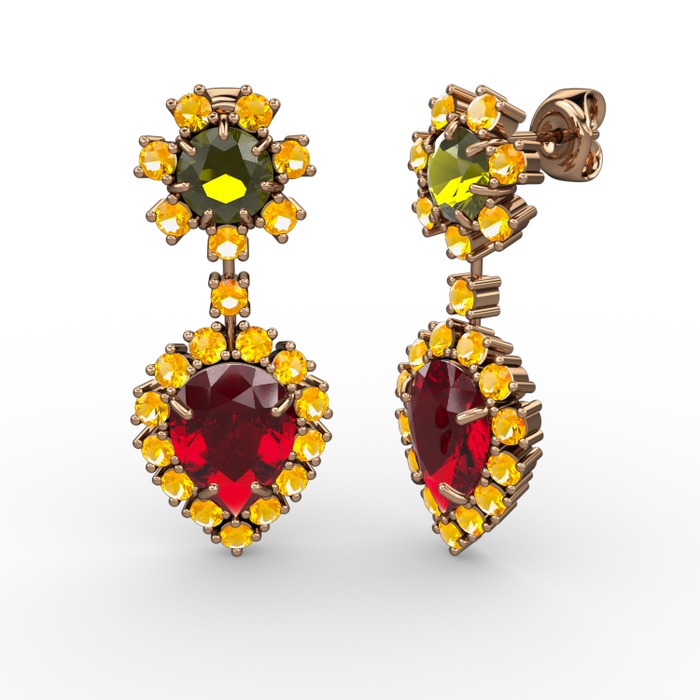 Garnet, sitrin ve peridot 8 ayar rose altın küpe