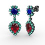 Garnet, yeşil kuvars ve lab safir 925 ayar siyah rodyum kaplama gümüş küpe