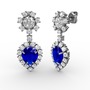 Lab safir, beyaz zirkon ve swarovski 14 ayar beyaz altın küpe