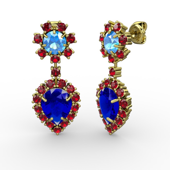 Lab safir, garnet ve akuamarin 925 ayar altın kaplama gümüş küpe