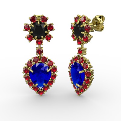 Lab safir, garnet ve siyah zirkon 8 ayar altın küpe