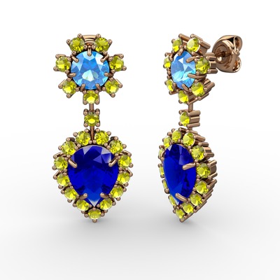 Lab safir, peridot ve akuamarin 8 ayar rose altın küpe
