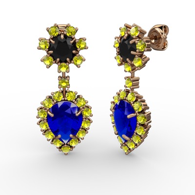Lab safir, peridot ve siyah zirkon 8 ayar rose altın küpe