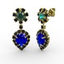 Lab safir, siyah zirkon ve yeşil kuvars 18 ayar altın küpe