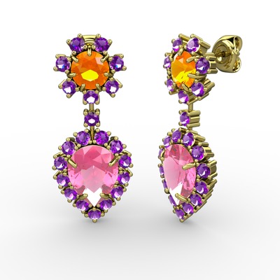 Pembe kuvars, ametist ve sitrin 925 ayar altın kaplama gümüş küpe
