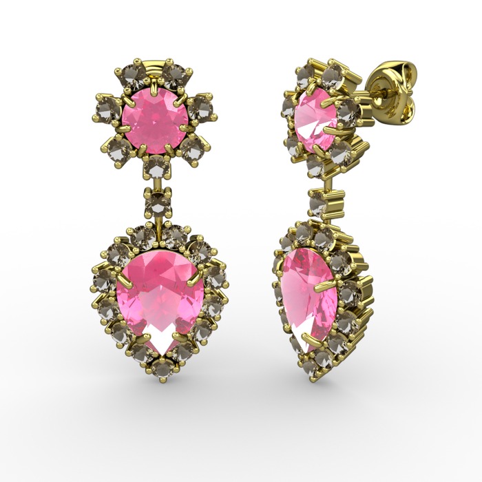 Pembe kuvars ve dumanlı kuvars 925 ayar altın kaplama gümüş küpe
