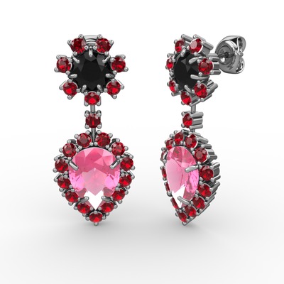 Pembe kuvars, garnet ve siyah zirkon 925 ayar gümüş küpe
