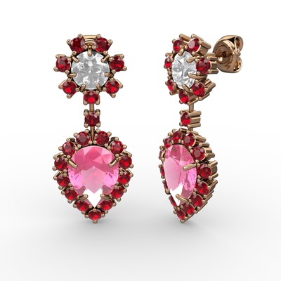 Pembe kuvars, garnet ve swarovski 925 ayar rose altın kaplama gümüş küpe