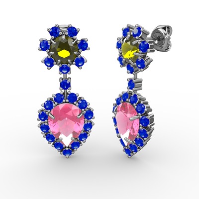 Pembe kuvars, lab safir ve peridot 925 ayar gümüş küpe
