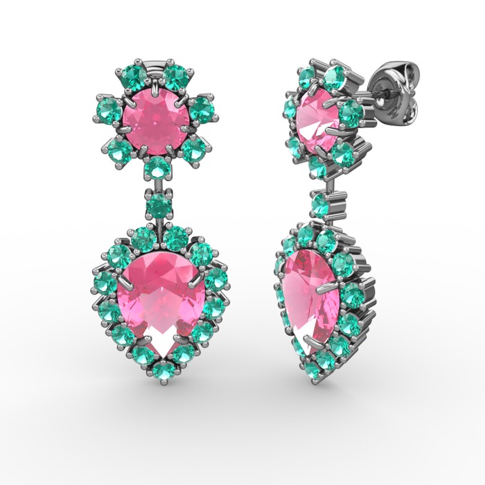 Pembe kuvars ve yeşil kuvars 8 ayar beyaz altın küpe