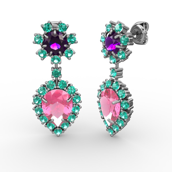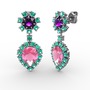 Pembe kuvars, yeşil kuvars ve ametist 8 ayar beyaz altın küpe