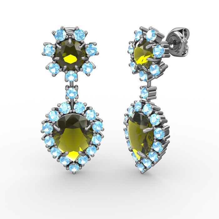 Peridot ve akuamarin 18 ayar beyaz altın küpe