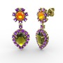 Peridot, ametist ve sitrin 925 ayar altın kaplama gümüş küpe