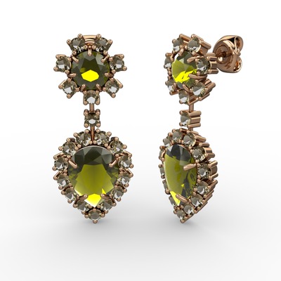 Peridot ve dumanlı kuvars 8 ayar rose altın küpe