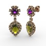 Peridot, dumanlı kuvars ve ametist 8 ayar rose altın küpe