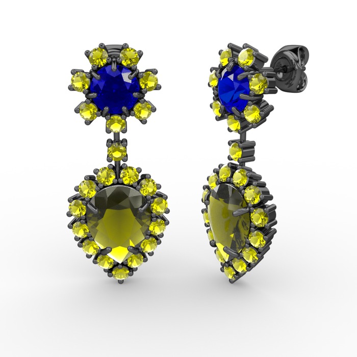 Peridot ve lab safir 925 ayar siyah rodyum kaplama gümüş küpe